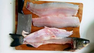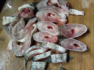 把鱼改刀分类,鱼头,鱼骨,鱼肉,鱼头可以留着做鱼头豆腐汤。