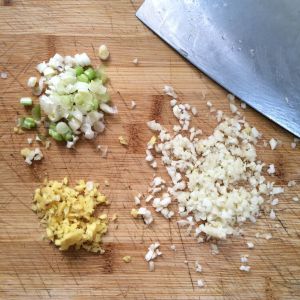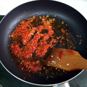 Stp5 锅烧热倒油,然后放入切好的姜蒜葱,直至香味出来,中火差不多半分钟