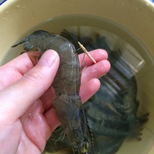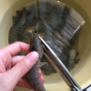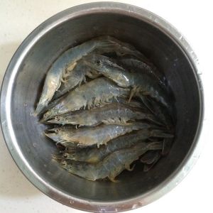 把虾线和虾头的脏东西去掉 ,剪掉虾枪和须备用