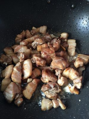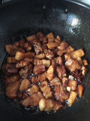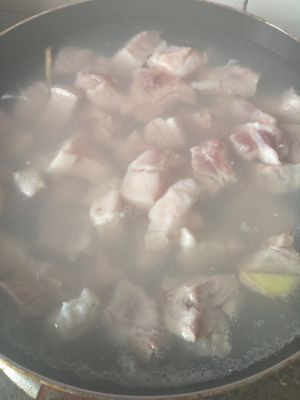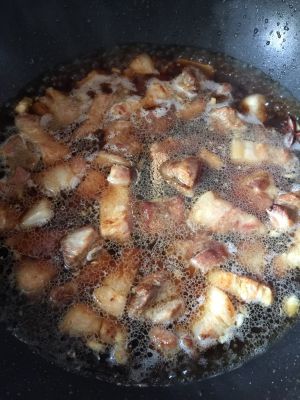 炒几下后放没过肉的水,放适量冰糖,水开后转中小火