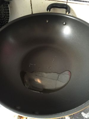锅中少油,放一点点盐(怕beng油)