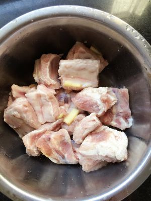排骨洗净,加料酒,姜丝腌制半小时