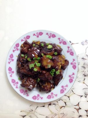 加入量大概就是一酱碟。 在收汁时反复翻炒,一定要均匀布满每一块排骨中。