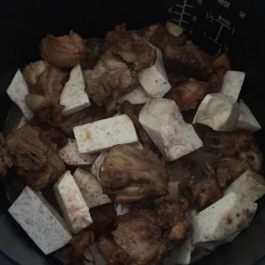 煮大概10分钟后,加入芋头,继续煮25分钟左右