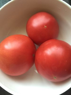 西红柿划痕开水烫俩分钟,去皮剁碎,待排骨炒干全部上色时加入。