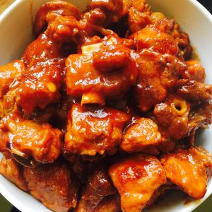 用两勺料酒,三勺冰糖,四勺酱油,五勺醋调成酱汁,