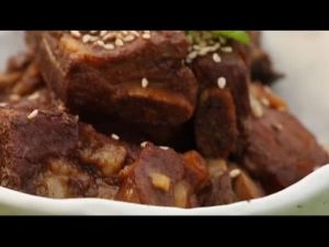 差不多在砂锅中炖煮1小时,关火前加入香葱,白芝麻,整煲端出上桌,香气扑鼻,肉质软烂,酸甜可口,