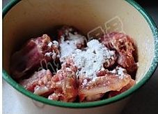 先将排骨洗净,控干水后,倒入适量料酒这样能去除腥味,在放入生抽酱油,胡椒粉,少量淀粉,盐,还有点辣椒粉。将它们充分搅拌后静止1个小时。