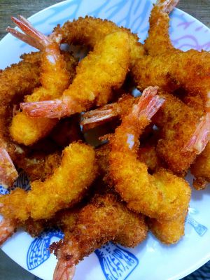 油锅加热,放入裹好面包糠的凤尾虾,记得翻转,炸到酥脆焦黄即可。