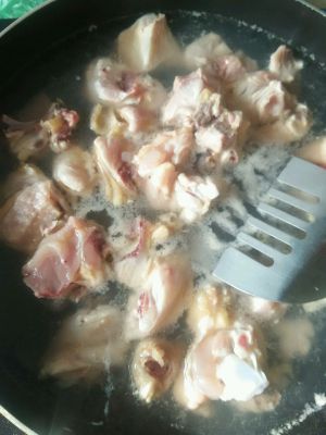 鸡肉热水下锅,焯水几分钟,然后捞出待用。