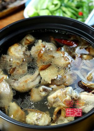 倒入砂锅,加水,多一些水,没过鸡肉1个指节,大火烧开