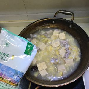 煮至排骨软烂,放入盐即可。一份鲜美的酸菜排骨就做好啦