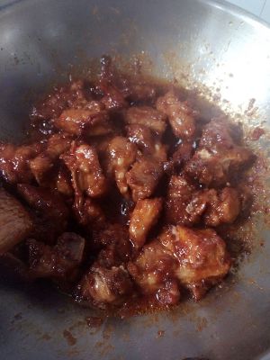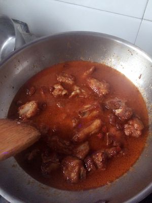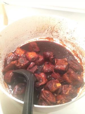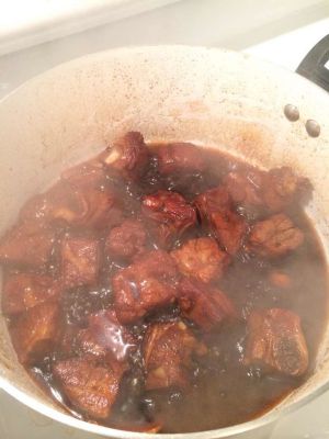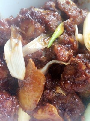 加点水、盖上锅盖小火炖一会、大概30分钟~然后尝下味道,根据口味再加入佐料、无锡人吃甜、所以我还会加两勺白糖、!然后转大火开锅盖收汁~此时还可以加点蚝油哦!