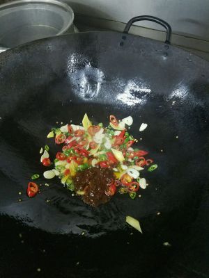 编炒3分钟,捞出,下葱姜蒜,翻炒