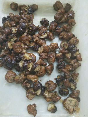 肥肠买回来切断,用温水清洗一下,用温水洗一是为了把污渍去除,二是去掉一部分油呢,大肠里面的油实在是厚啊!