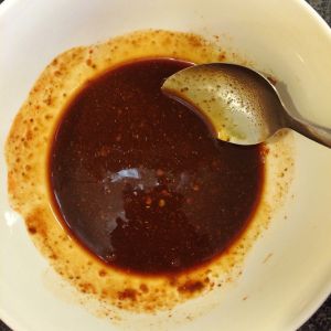 来说说料汁 蒜蓉辣酱加少许豆腐乳汁及孜然粉 搅拌均匀 若觉得咸 可加点水