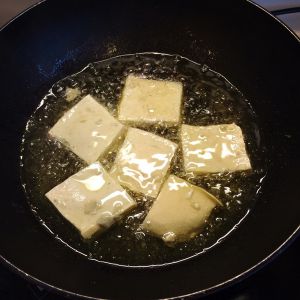 锅内放入适量的油 放入豆腐炸