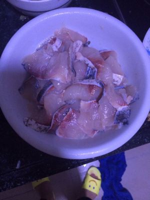鱼肉片成片,鱼骨垛成块。鱼片和鱼骨分开装。鱼片放入盐多次清洗,直到水变清澈。放入盐腌制使鱼肉紧致不易碎。再加入一勺料酒一些胡椒粉一个蛋清加入淀粉拌匀腌制半小时。