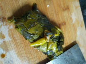 酸菜切段。我这些切了四刀