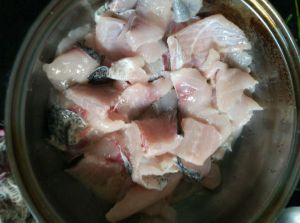 片鱼:将鱼去鳞和鳃祛干净,剖腹洗净,并片成鱼片再用清水洗净待用。