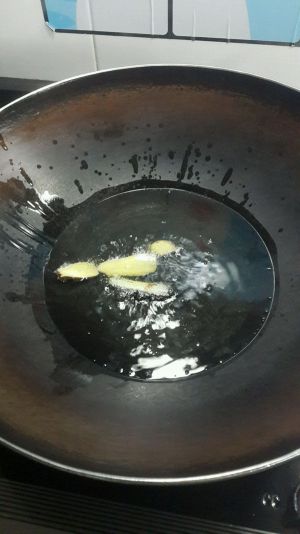撂完装盘出来用盐酒腌下!然后热锅放比平时油多点放入姜 片炒香之后倒入排骨煎两面黄点!喜欢好点就煎久点!片