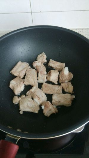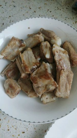 小排骨冷水下锅加姜片料酒八角大火烧开,直到完全变色撇掉血沫
