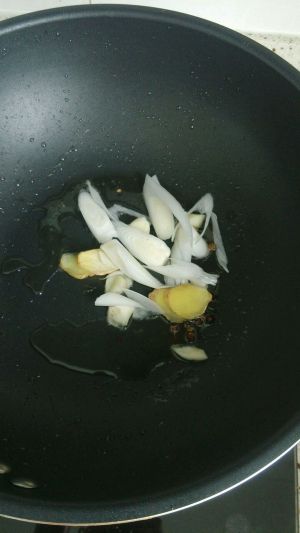 热油后,先下姜蒜爆香。然后下焯好的排骨,桂皮八角下锅。