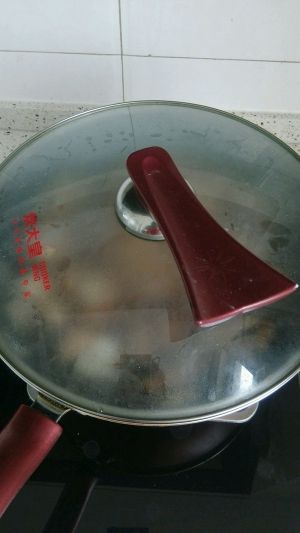 水收到还剩三分之二的时候再加一勺醋,小小半勺盐,盖盖继续焖