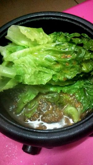 生菜放入,盖锅焖