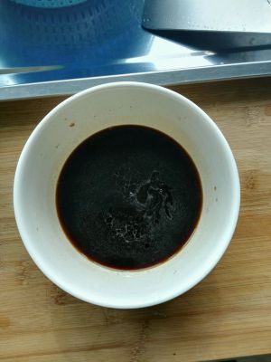 在煎的同时,将生抽、醋、糖、料酒调成汁,待用。