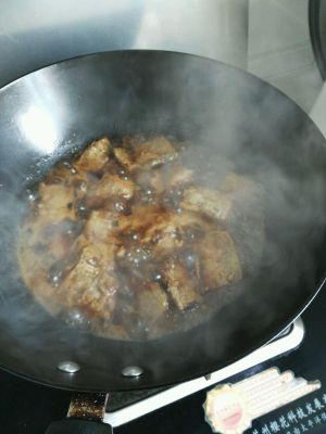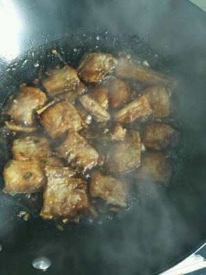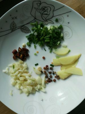 热油放生姜末一点点辣椒粉,加糖,料酒,生抽,胡椒粉,炒香