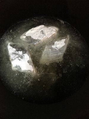 带鱼处理好洗净,切段,晾干或用厨房纸吸干水份,姜切片待用;。
