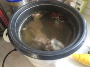 羊骨头洗干净,放水烧开,舀掉汤上面的血沫,加入生姜片,大葱,红枣继续烧开,放盐。