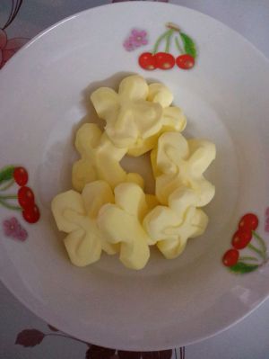按个人喜好,挤出花形。放入0度冰30分钟(^_^)