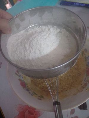 筛入200克的低筋面粉(我用的面粉)【直接倒进去也可以】