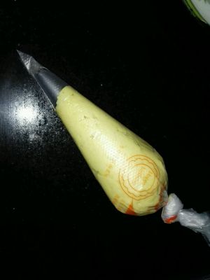 烤盘铺上锡纸,把拌好的放入裱花袋,挤出来即可!