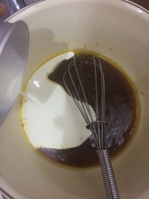 加入25克可可粉(我用的乐口福)均匀搅拌