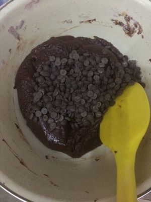 搅拌好的面糊加入巧克力豆。搅拌均匀即可。