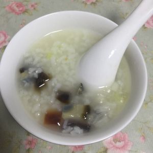 熬好的粥里放少许胡椒粉、盐、鸡精调味,最后滴几滴香油撒上香葱末就完成了。