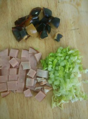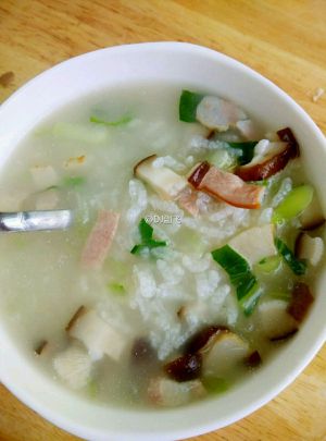 白米熬成粥,加辅料,加盐,鸡精,厨帮酱油,出锅。