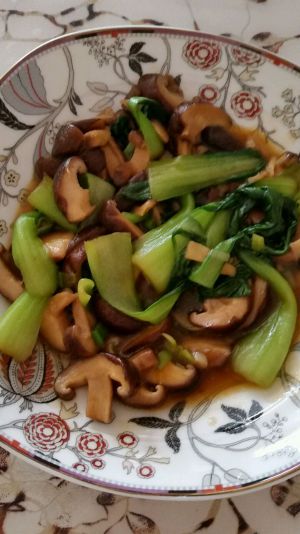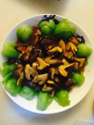 葱姜蒜爆香,下香菇翻炒一下,在加油菜翻炒