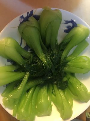 油菜焯水后摆盘,在水里稍微放了些许盐