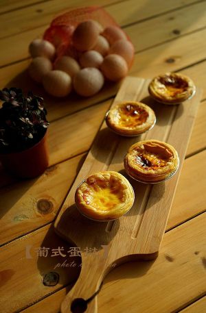 烤箱预热210°,(如果准备了水果,先将水果块放入挞皮中)将过筛好的蛋挞液盛入蛋挞皮中,八分满即可,中层,上下火,30分钟即可。