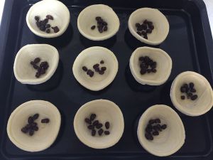 用牙吸印出圆形,再用挞盖捏成挞皮,炉温上250°C下260°C,烤12分分钟