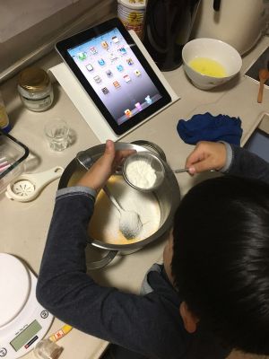 将蛋黄和白糖一起搅拌到融化 放入15g低粉 搅拌均匀后 加入淡奶油 和牛奶一起搅拌。加入炼乳看着放一勺这样 比较香 再加入芒果丁