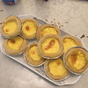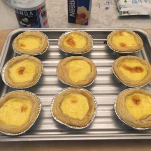 预热好放进烤箱烤20~25分钟…每家烤箱大小不同,温度和时间会有所差别…蛋挞表面微焦即可