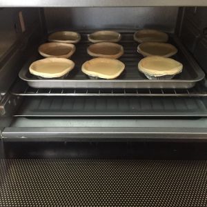 蛋挞皮拿出摆好,加入适量红豆,预热烤箱210度五分钟