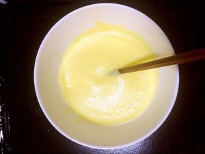 蛋黄分离出来,加入糖、牛奶、面粉搅拌均匀,蛋液就好了。