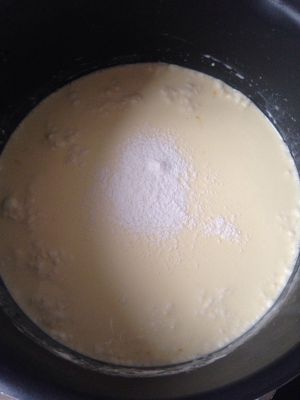 加入白砂糖,搅拌至白糖融化。