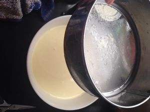 将配好的蛋挞液过滤两遍。